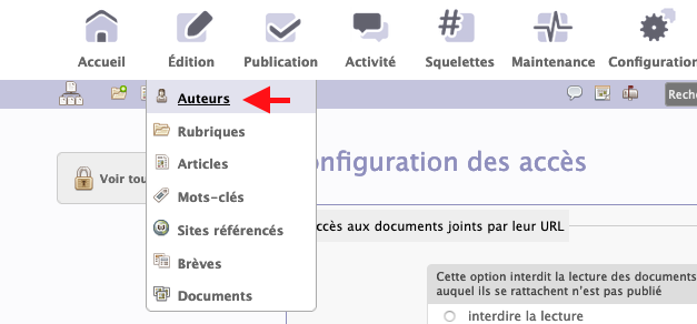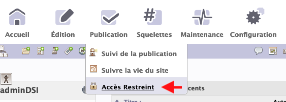 Allez au menu Publication > accès restreint.