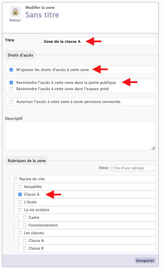 - Cocher la rubrique à restreindre