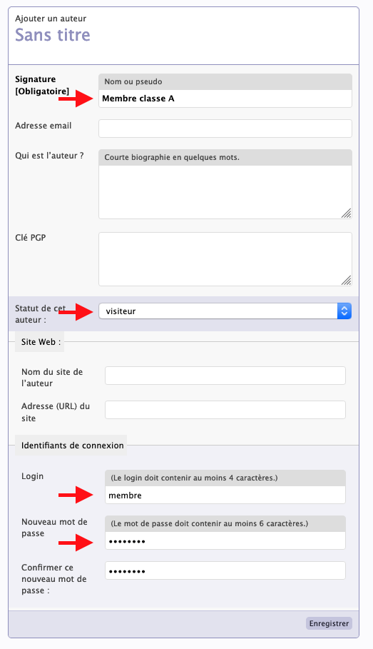 - Donnez-lui un identifiant de connexion (login) et un mot de passe.